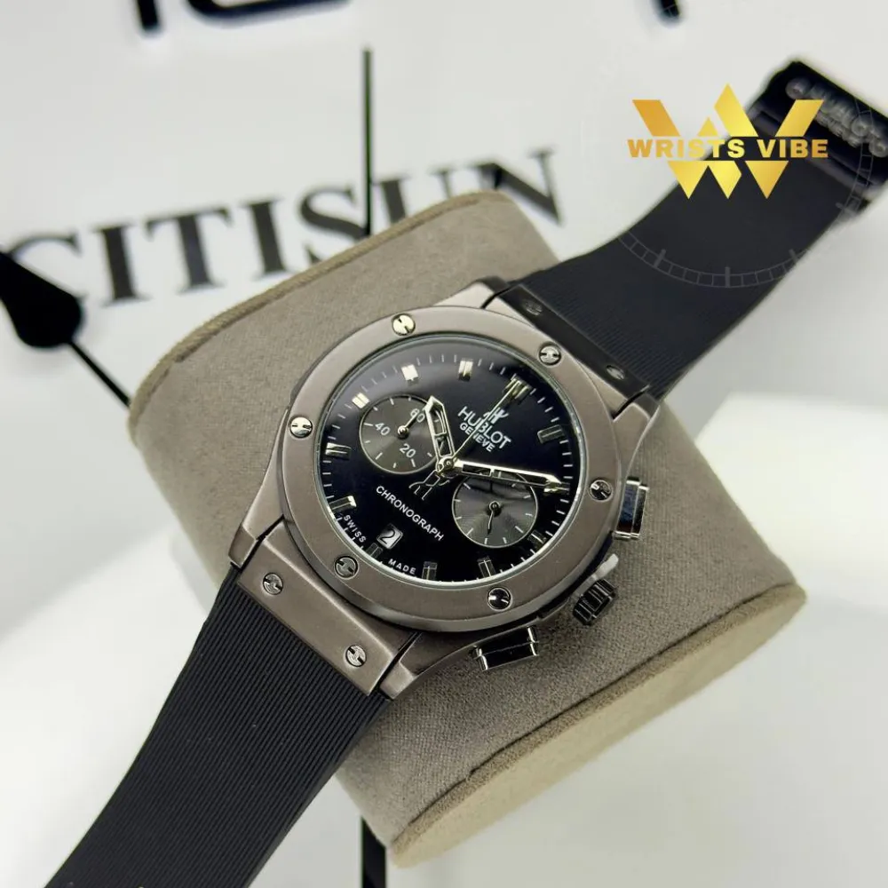 Hublot Chronograph Men’s Watch – Leather Strap, Date & Sub-dial Display