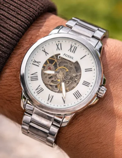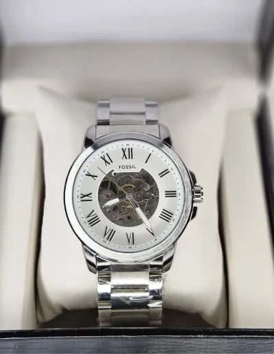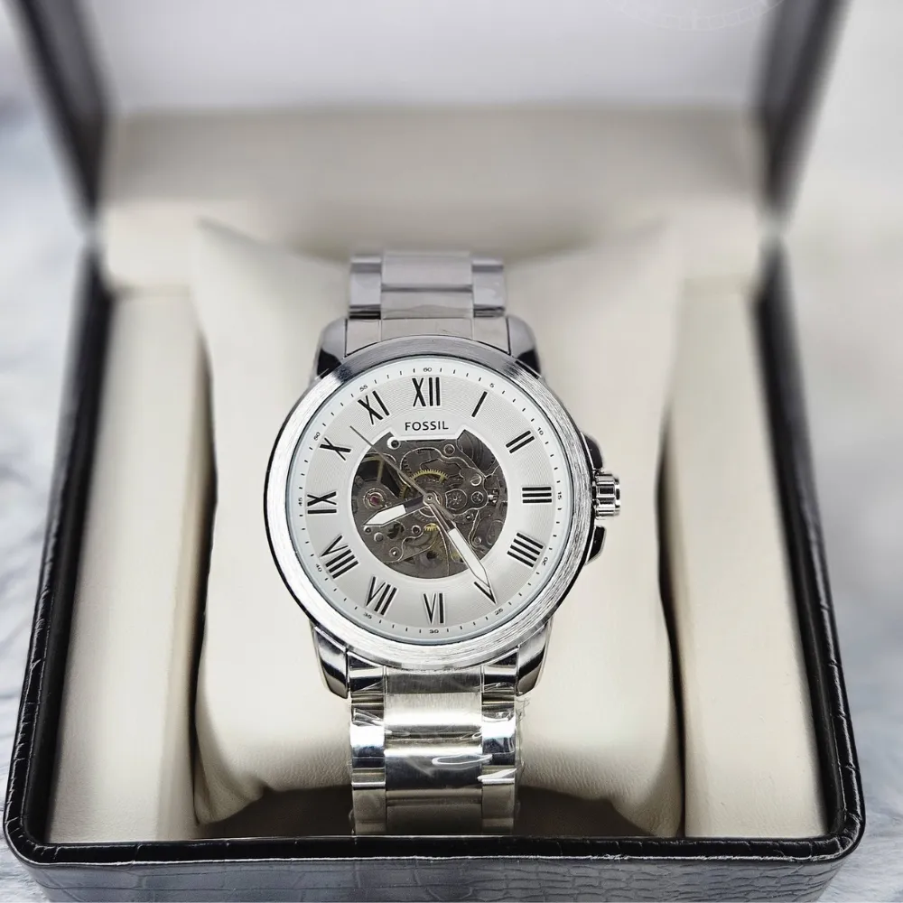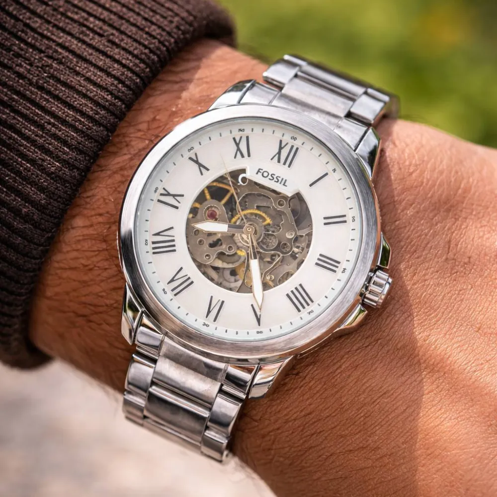 FOSSIL Automatic White Men’s Watch – A Bold Statement of Luxury (White and Black)